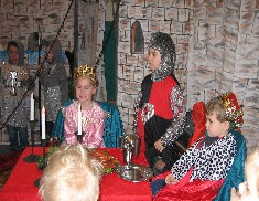 Selbstverständlich gibt es auch in diesem Programm viele Mitmachlieder für alle, aber auch die Möglichkeit für einige Kinder in Kostüme und Rollen zu schlüpfen.